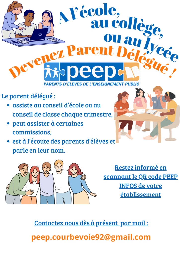 - Le bureau et toute l’équipe de parents PEEP vous accompagneront pour que votre voix porte enfin au sein de l’école.